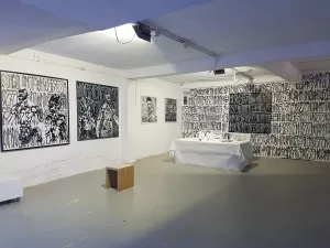 In the exhibition #Exchange, Simões and Kwakye each from their own backgrounds go in search of tolerance and diversity, of mobility between worlds, of other cultures and ideas in all openness without prejudice. They engage in an exchange without words. The exhibition includes a wall painting, installation & performance, paintings, collages, photos and a video, either photos or works of art in which photography has been instrumental in making them.
