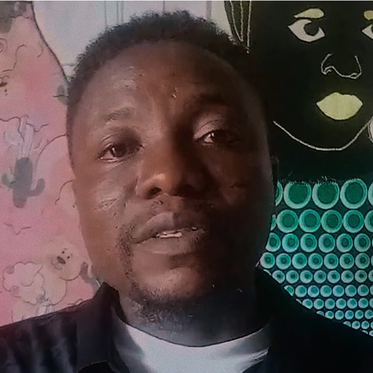 Agemo's work began as a fashion designer in Ivory Coast before returning to his hometown of Badagry, Nigeria. Working with textiles, Agemo creates intimate portrayals of family life, drawing the viewer into the privacy of the home and shared moments, reflecting on the home as both a tightly woven network of relationships and a refuge from the outside world.